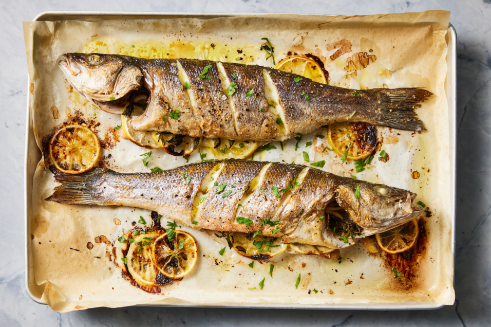 The fish is typically cleaned, lightly scored, and seasoned with salt, olive oil, lemon slices, and fresh herbs. It is then cooked until the skin becomes crisp and the flesh flakes easily.