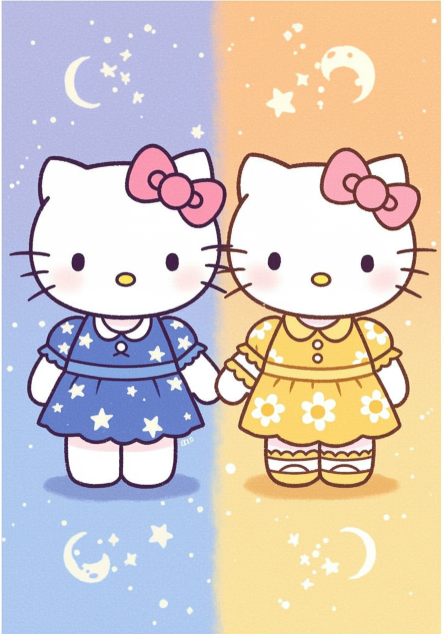 Hello Kitty matching PFPs are often styled with pink backgrounds, bows, hearts, or seasonal themes, making them versatile and timeless.